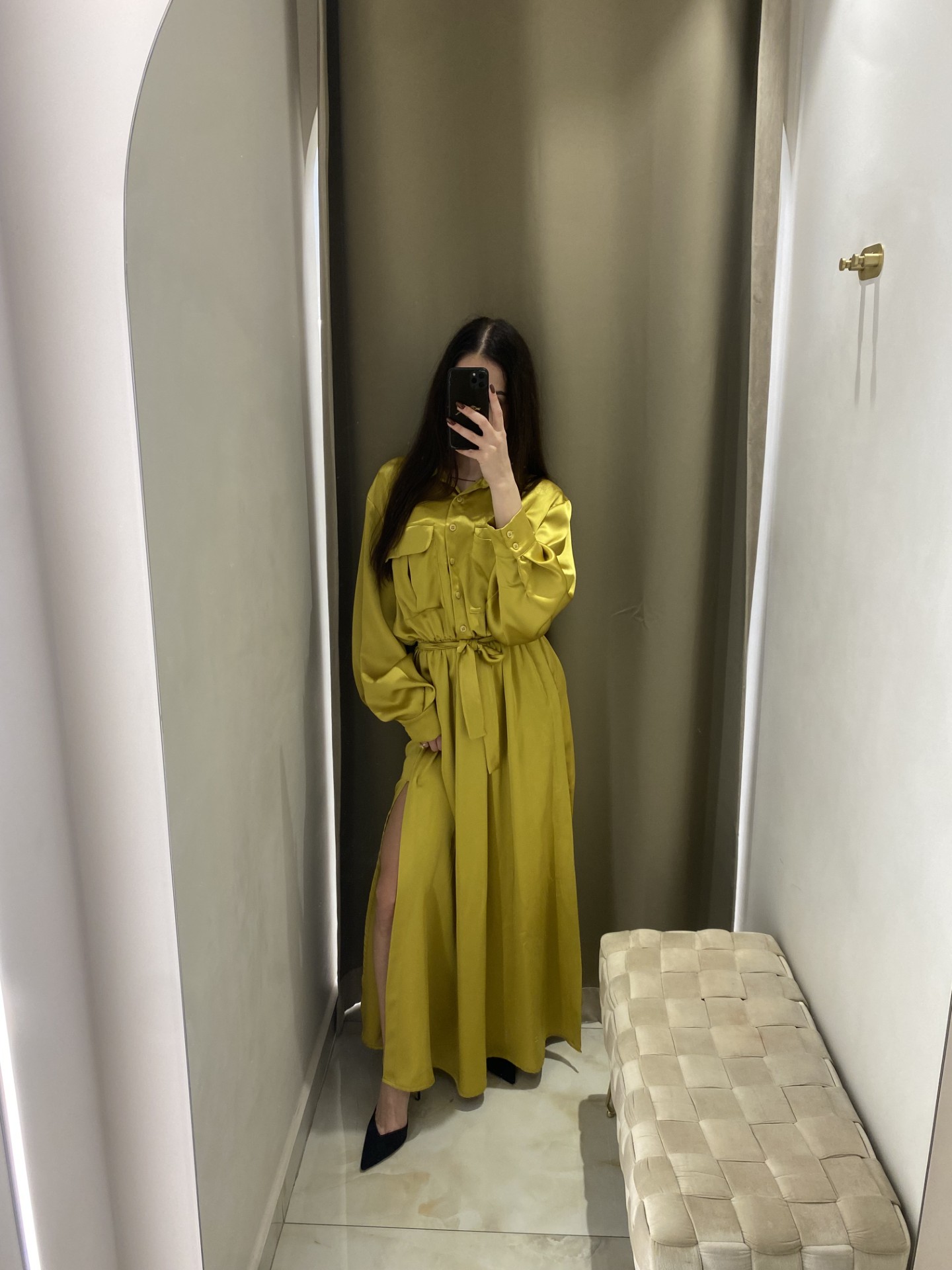 MOUTAKI Maxi Σεμιζιέ Φόρεμα Σατέν Κίτρινο